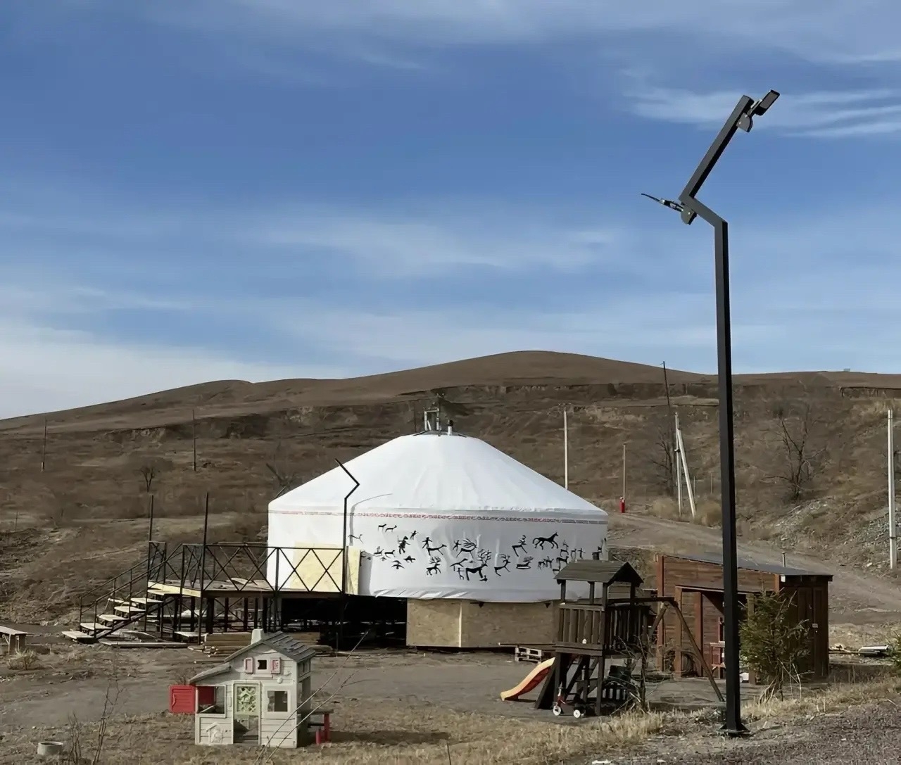 Комплекс расположен у подножия горы Кюн-Таг и включает кемпинговый городок и банный комплекс.