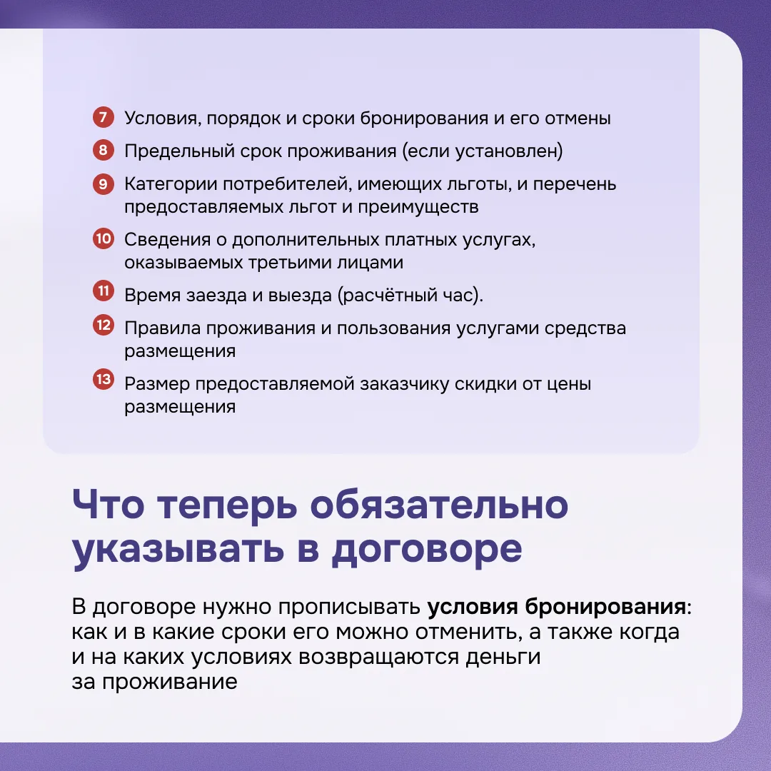В карточках — короткий чек-лист для владельцев и управляющих средств размещения, чтобы быстро оценить, всё ли учтено.